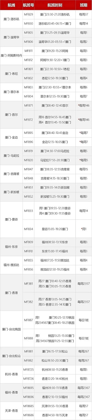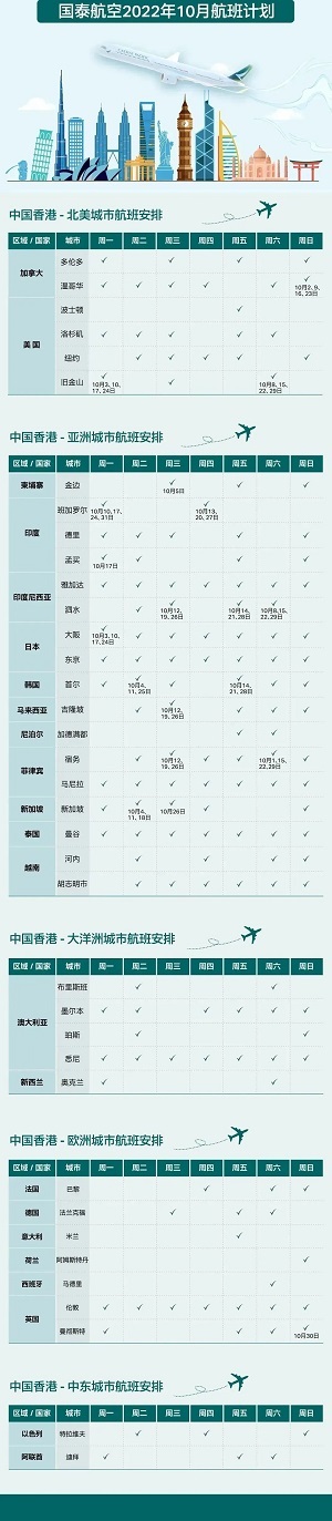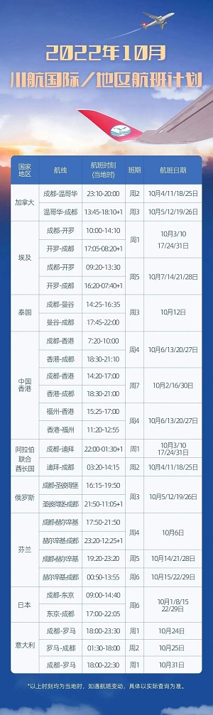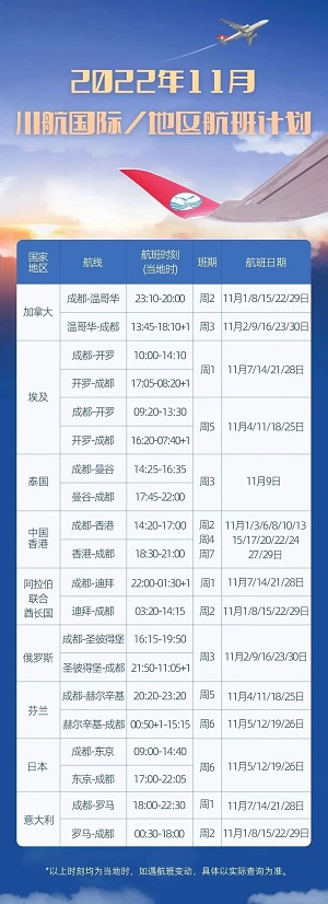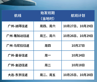 10月、11月國際/地區(qū)航班計(jì)劃如下: