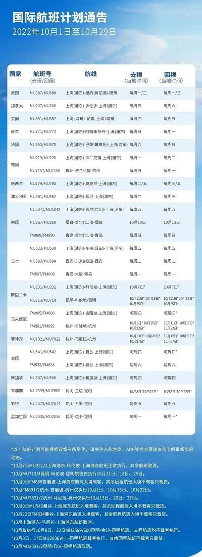 新增的國際航線將于10月20日起逐步開始執(zhí)行。具體航班計(jì)劃以東航官網(wǎng)實(shí)際查詢?yōu)闇?zhǔn)。