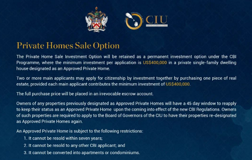 房產投資選項作為一個永久性的投資選項保留在CBI計劃下,每個申請的最低投資額為40萬美元,投資于一個被指定為核準私人住宅的私人獨戶住宅。
