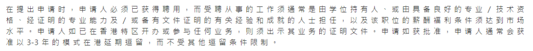 申請續簽時,申請人必須已獲得聘用,即需要獲得香港工作offer且符合相關要求才可以續簽。一般情況下,續簽模式是2+3+3,若符合頂尖人才逗留模式,則為2+6。