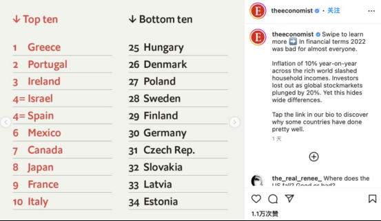 近期《經濟學人》就編制了以GDP增長、通貨膨脹、通貨膨脹范圍、股市表現和公共債務的五個經濟和金融指標數據,并對34個主要是富裕國家的這些指標進行了分析排名。