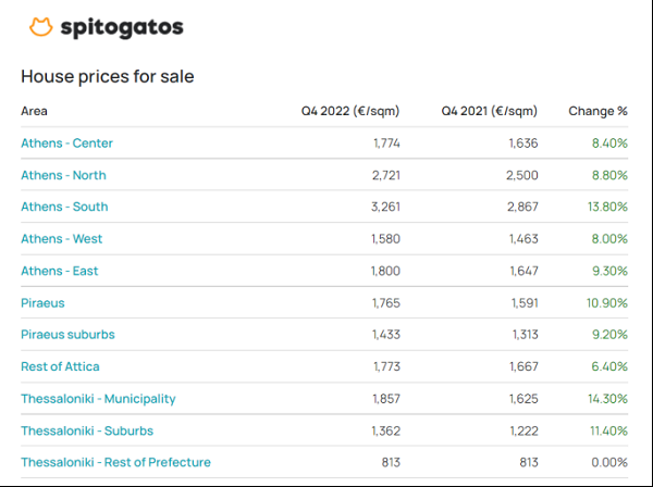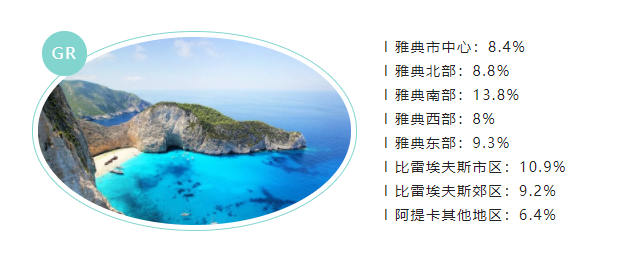 2022年,希臘全國范圍的房價上漲幅度約為8%,和2021年第四季度相比,雅典各個區域的漲幅不盡相同,以下大家可以作為熱門區域的參考數據: