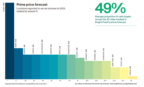 雖然2023年超高凈值人士購買住宅物業的比例(15%)較2022年略有下降,但現金購買的高比例(49%)將緩沖利率上升的影響,并支撐房價。