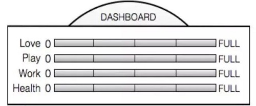把自己想象成一輛汽車,愛、玩樂、工作、健康是你儀表盤上最重要的四個指標。