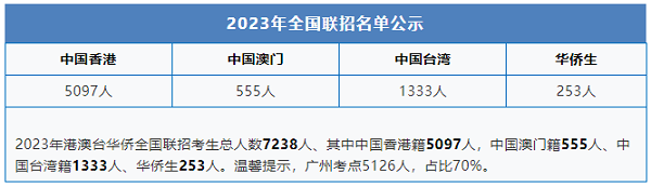 這其中:香港考生(5097人)、澳門考生(555人)、臺灣考生(1333 人)、華僑考生(253人)。