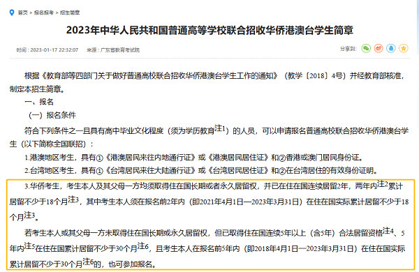 考慮到華僑生聯(lián)考對孩子和父母一方的海外居住時間要求,永居類身份的時間要求最短。