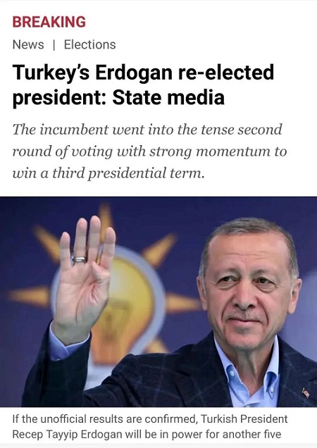 耶內爾說,根據(jù)對 99.43% 票箱的計票結果:現(xiàn)任總統(tǒng)雷杰普·塔伊普·埃爾多安贏得 52.14% 的選票,鞏固了他的第三個任期(任期至2028年);而反對黨陣營“民族聯(lián)盟”候選凱末爾·基利達羅格魯獲得 47.86% 的選票敗北。