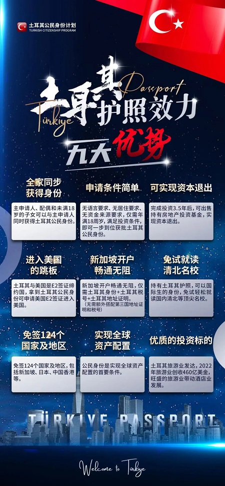 現(xiàn)在的政策非常利好中國投資者:根據(jù)2022年土耳其法規(guī)的最新變化,外國人只要購買至少400,000美元的房地產或500,000美元資本的公司,就可以獲得土耳其公民身份。實現(xiàn)零登陸、全家一步到位、低成本快速拿準歐盟護照。