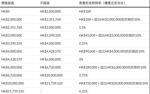 而一般香港永久居民首次買房稅率在1.5%~4.25%之間,即:
