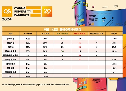 而雇主聲譽占比上調、新增就業成果,共提高10%,說明更加看中大學培養畢業生的就業能力,排名較低但是很受國際大廠青睞和認可的院校排名也將有一定的上升空間。