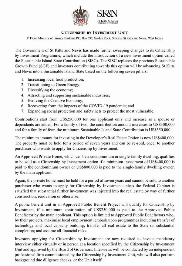 重磅消息!圣基茨·尼維斯再次加強(qiáng)其投資入籍(CBI)計(jì)劃的管理,并宣布重要變化。