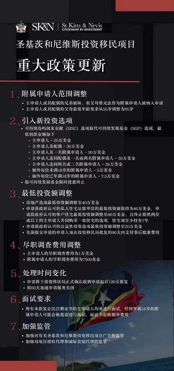 圣基茨·尼維斯頒布最新政策,以進(jìn)一步提升其投資移民項(xiàng)目的完整性和競(jìng)爭(zhēng)力。此次政策更新包括以下七大重點(diǎn):
