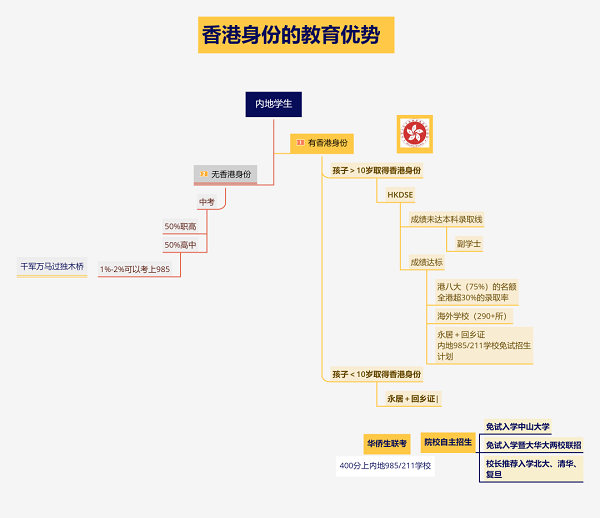 下面就和大家從教育角度來分析一下香港身份的優勢:內地學生有香港身份跟沒有香港身份,升學途徑迥然不同。