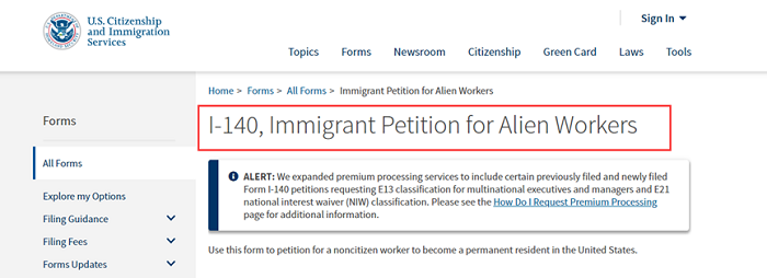 I-140 正式名稱為外籍勞工移民申請(Immigrant Petition for Alien Worker),是美國雇主向美國公民及移民服務(wù)局提交的一種文件, 該文件旨在為其外籍雇員申請永久移民身份。