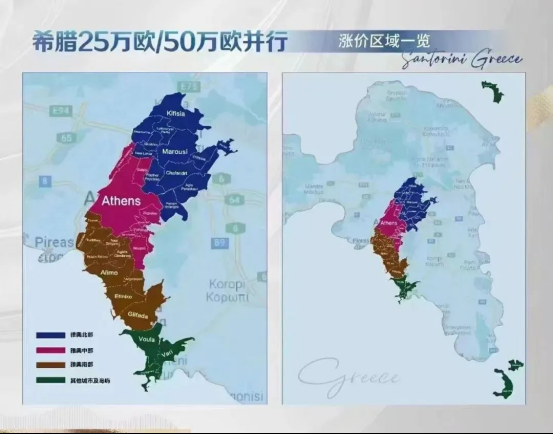 雅典中部、北部和南部地區(qū)、塞薩洛尼基、米科諾斯島和圣托里尼島,希臘黃金簽證的最低投資額:從25萬(wàn)歐元漲至50萬(wàn)歐元。