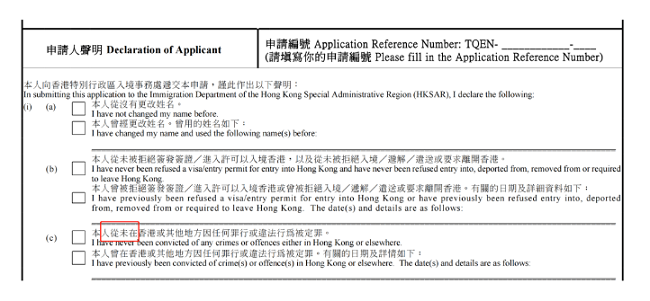 高才通計劃申請人必須在電子申報表中如實申報是否有刑事定罪記錄,如被發(fā)現(xiàn)作出虛假陳述,必須承擔法律后果。