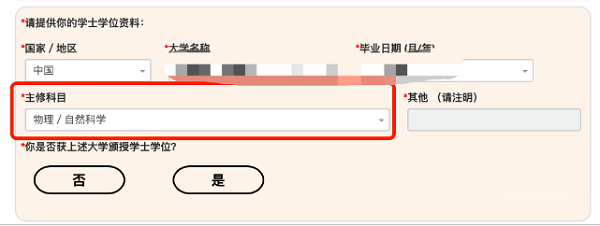 補交學位認證報告或教育部留服報告,申報主修科目。
