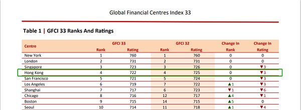 香港是全球最佳營商地區之一。根據近日發布的全球金融中心指數排名,在全球130個金融中心中,香港全球排名第四,在基礎設施方面排名第五名,營商環境方面則排名第六名。在香港開設公司的程序快捷簡易,成本低廉。