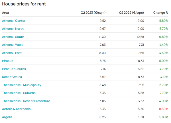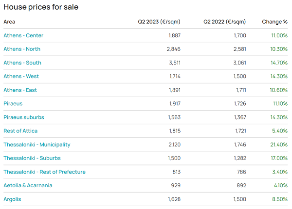 就區域而言,首都雅典上漲14.1%,第二大城市塞薩洛尼基上漲16.4%,其他城市上漲14.6%,其他地區上漲12.1%。
