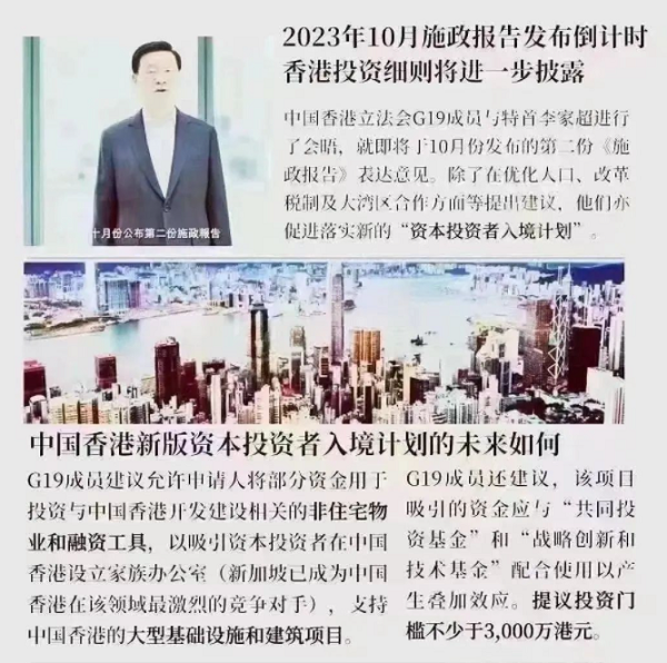 近日,“G19”立法會議員會晤特首李家超,就新一份《施政報告》表達意見。除在優化人口、改革稅制及大灣區合作方面等提出建議,還將從速落實新的資本投資者入境計劃,建議如下: