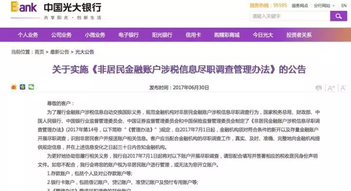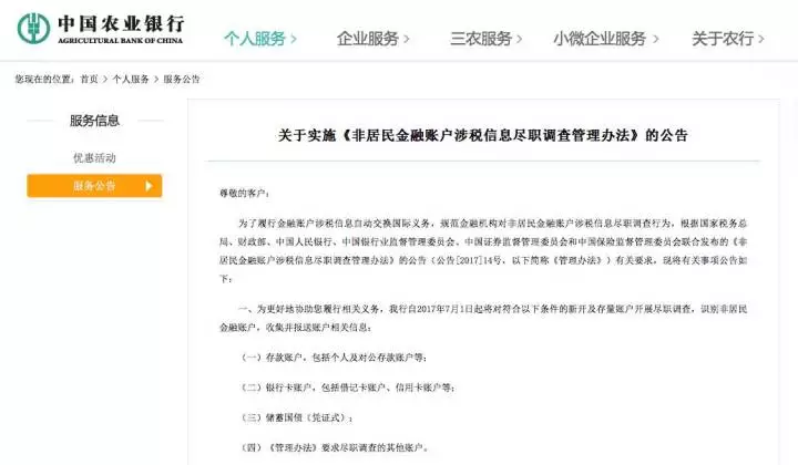 公告顯示,建設銀行此舉是為了履行金融賬戶涉稅信息自動交換國際義務,規范金融機構對非居民金融賬戶涉稅信息盡職調查行為。