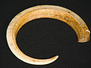 瓦努阿圖人民對豬牙的品質有特別的評判標準:不是越大越好,而是越彎越好,彎成圓弧狀、甚至彎曲盤旋好幾圈,就簡直價值連城了――國旗國徽上的豬牙,就是彎成一個大圓形。這里的豬和別處的其實沒什么不同,如果任其自生自滅,它們的獠牙當然也會和別處一樣,長成又長又尖的形狀。但當地人自有辦法:他們把小豬崽養到一歲大,就動手拔掉它的上犬齒,這樣它的下犬齒就會自然而然長成彎曲的形狀,如果運氣好,甚至可以彎成三道圓圈。