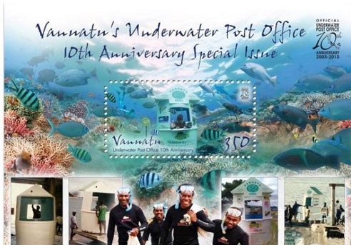 瓦努阿圖為吸引游客,于2003年5月在其海德威島(Hideaway)上開辦了世界上惟一的一所真正的“海底郵局”。這海底郵局是由經(jīng)過專業(yè)潛水訓(xùn)練的郵政人員在水下辦公,寄信的人需戴上呼吸器或套上潛水衣下到三米深處投遞防水明信片,然后郵局的人會在上面加蓋特殊的封印。這座水下郵局離海岸有三四十米遠,建在海面以下3米深的地方。要想去那里寄信,除了潛水沒有其他途徑。郵寄用的明信片是專門設(shè)計的防水明信片,可以去附近商店購買,一張的價格約合人民幣15元。