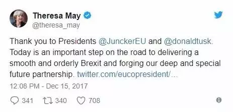 感謝主席們!我們終于在脫歐大道上邁出重要的一步,期待明年能與大家共同合作~