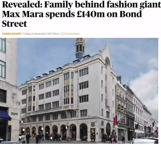 意大利的Maramotti家族斥資1.4億英鎊,買下了24 Old Bond Street。