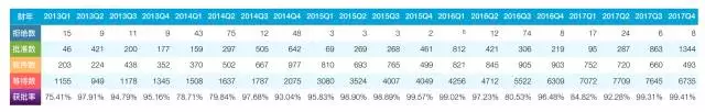 本季度的獲批率 = 本季度的 批準(zhǔn)數(shù)/(批準(zhǔn)數(shù)+拒絕數(shù))*100%