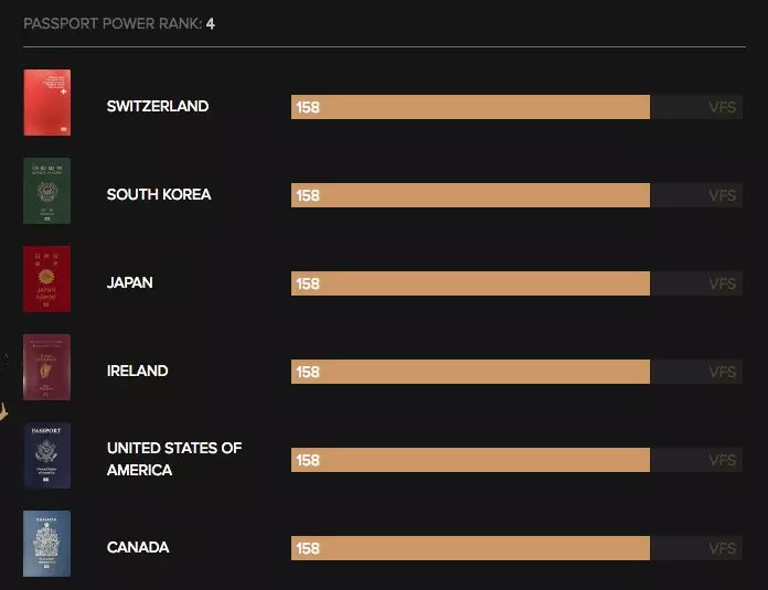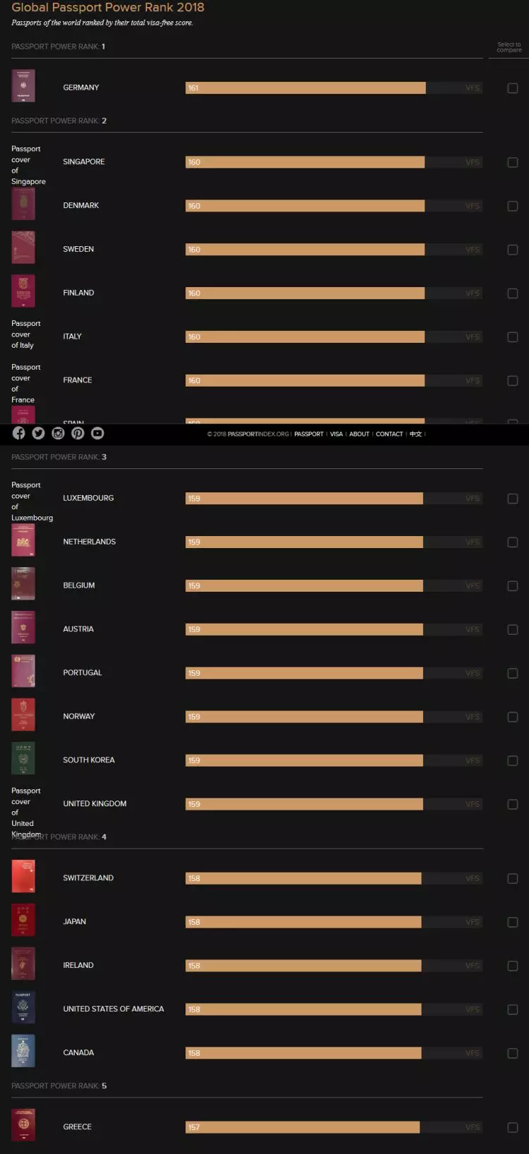 以下就是護照排行前五名的國家: