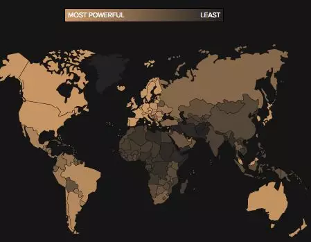 以下就是各國護照強度地圖: