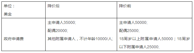 變化最大的當(dāng)屬其他附屬申請(qǐng)人(包括主申請(qǐng)人的子女、父母等)項(xiàng),由原來的不同年齡不同收費(fèi)標(biāo)準(zhǔn)變?yōu)楝F(xiàn)今不計(jì)年齡1萬美金/人。