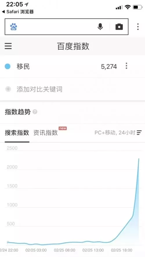 移民”關鍵詞一路攀高,最高顯示10535,搜尋頻率暴增150倍,堪稱史無前例!