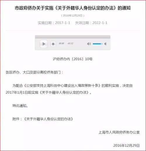 1、具有博士學位或者已在上海市“雙自(編者按:上海張江國家自主創新示范區和中國(上海)自由貿易試驗區)”區內、“雙創(編者注:創新和創業)”基地內連續工作滿4年,擬申請在華永久居留的外籍華人;