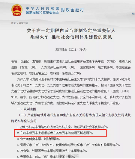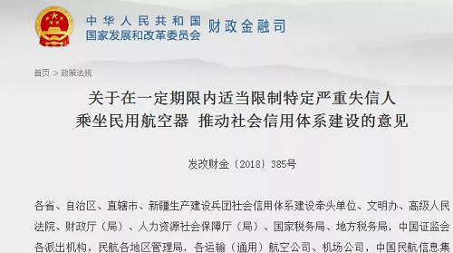 近日,國家發(fā)改委、民航局、鐵路總公司等部門聯(lián)合發(fā)布多個相關(guān)意見,在一定期限內(nèi)適當(dāng)限制特定嚴(yán)重失信人乘坐火車、民用航空器。意見自2018年5月1日起實(shí)施。