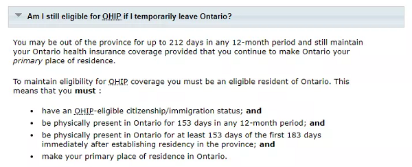 不同省份要求不同,以多倫多所在的安省為例,要求是在12月內(nèi)要在安省住滿153天,而且到安省的前183天內(nèi)要住滿153天。