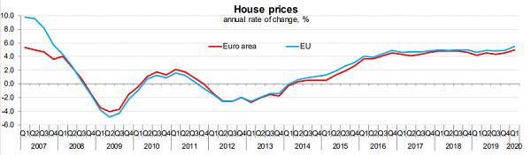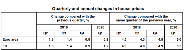 此外,歐盟統計局數據顯示,2020年第一季度,按房價指數衡量,歐元區房價較去年同季上漲5.0%,歐盟上漲5.5%,這是自2007年第二季度以來的最高增長。塞浦路斯的房價在2020年第一季度與去年第四季度相比房價上漲了2.5%,與去年第一季度相比上漲了1.1%。