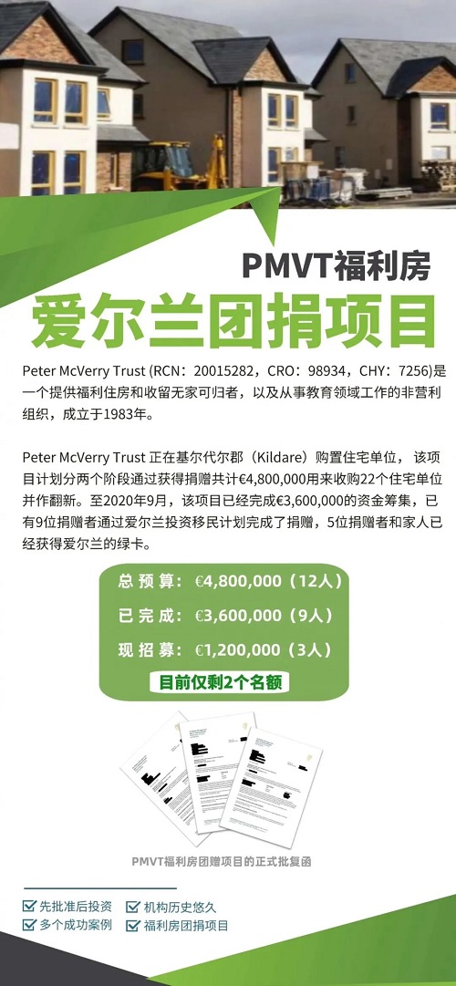 ● 愛爾蘭政府福利房投資移民:只需100萬歐元投資愛爾蘭政府福利房,投資者及其家人即可移民愛爾蘭,并享有在當地工作、學習和生活的權利,如果后期滿足居住期限的話也可以申請愛爾蘭護照。投資期限為3年,期滿后,投資人可以收回投資款,并可以保持愛爾蘭綠卡身份不變。