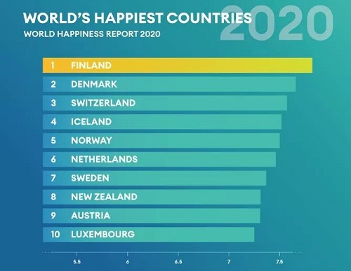 去年“國際幸福日”,聯合國發布2020年《全球幸福指數報告》。報告顯示,北歐國家芬蘭連續三年被評為全球“最幸福”國家,塞浦路斯排名第45,中國排名第94,前十名最幸福的國家歐洲國家占據了九個席位。