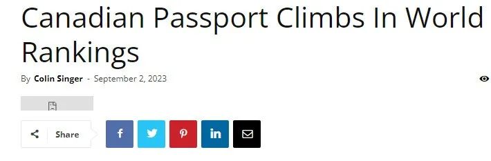 不過,去年加拿大護照的排名上升了一個檔次,升至第八位,現在又回到第七位,正在恢復大流行前的水平。