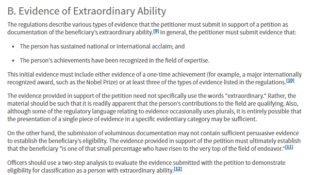 2、如何評估法條規定的第二步“根據總體情況綜合確定申請人的杰出性”,并列舉了審件官希望看到的有力證據。