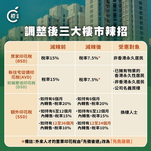 《施政報告》中提出多項樓市利好政策,即日起生效,包括: