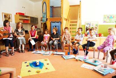 在活動結(jié)束后,要在老師的帶領(lǐng)下自己把玩具整理好,還不會走路的孩子,即使爬著也要將自己的東西放回規(guī)定的地方。除了在生活方面培養(yǎng)孩子的獨立自主能力外,德國的幼兒教育還非常重視孩子獨自做決定、獨立思考以及判斷的能力。每天上午,孩子們會自己決定參加什么活動(如繪畫,唱歌,踢球,開小汽車等),也可以自己提出新的、有時聽起來甚至有些離譜的建議。并且,這種獨立能力也包含讓孩子獨立判斷并解決孩子們之間的沖突和矛盾。老師們在對待孩子們的過程中,更偏向于引導(dǎo),避免以命令的口吻來決定孩子們的活動和安排。例如在德國幼兒園,吃飯之前,通常會有唱歌的活動,老師們總是會問孩子們想唱什么歌,然后讓提議者開頭,大家一起參與。老師們還會細(xì)心地將孩子們的活動安排記錄在黑板上,這樣父母們能夠直接看到,孩子們一天的各種活動,以及活動的倡議者,和活動安排。一步步看到自己孩子的成長和獨立。在德國幼兒園對于孩子獨立性的培養(yǎng)過程中,孩子們會體會到老師對于他們能力的充分信任和尊重,并在可控范圍下鼓勵他們進(jìn)行冒險。